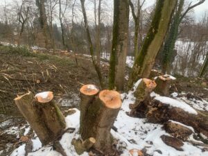 Eine sinnvolle forstwirtschaftliche Nutzung ist auf Grund der Fakten auszuschließen: Ca. 60 bis zu 80 Jahre alte gesunde Bäume wurden bereits gefällt, zusätzlich hat man im Zentrum der Parzelle den gesamten Jungbaumbestand entfernt. Diese brutale Baumfällaktion ist ein Affront gegen die mühsame Baumpflanzoffensive der Stadt Linz und reiht reiht sich nahtlos in die vor 2 Jahren erfolgte sonntägige Fällung von ca 100 Bäumen für den neuen Sportplatz. Gleichzeitig wurde damals während laufender Gespräche eine Grundteilung vorgenommen, sodass die Anrainer schlagartig ihr Mitspracherecht verloren.